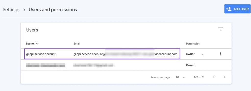 अब कुछ हे समय में, आपके Service account को एक नया Owner के रूप में list किया गया दिखाई देगा.