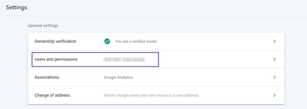 Google Search Console सेटिंग्स में उपयोगकर्ताओं और अनुमतियों में जाएं